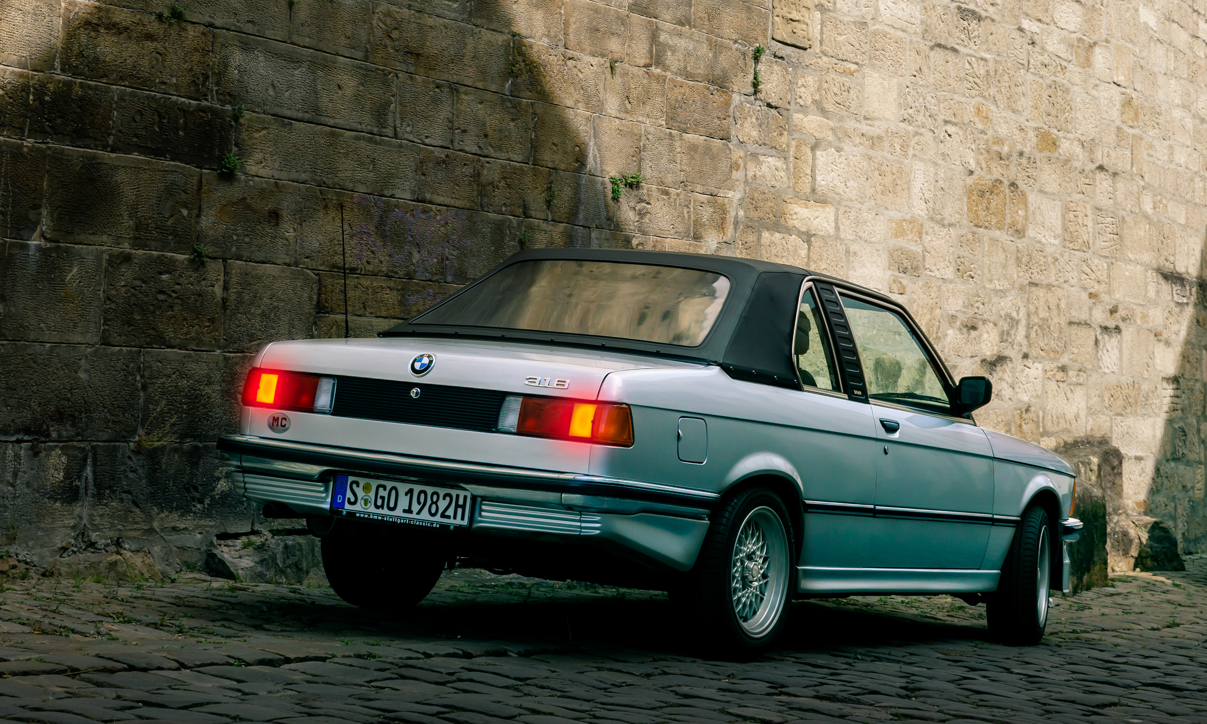 A Photo-shooting of the BMW 318 I Baur Cabrio (E21) from 1982 with the integrated option to store the roof into the back of the car, making it a first-class cabriolet for your weekends. Just like in the good old days.